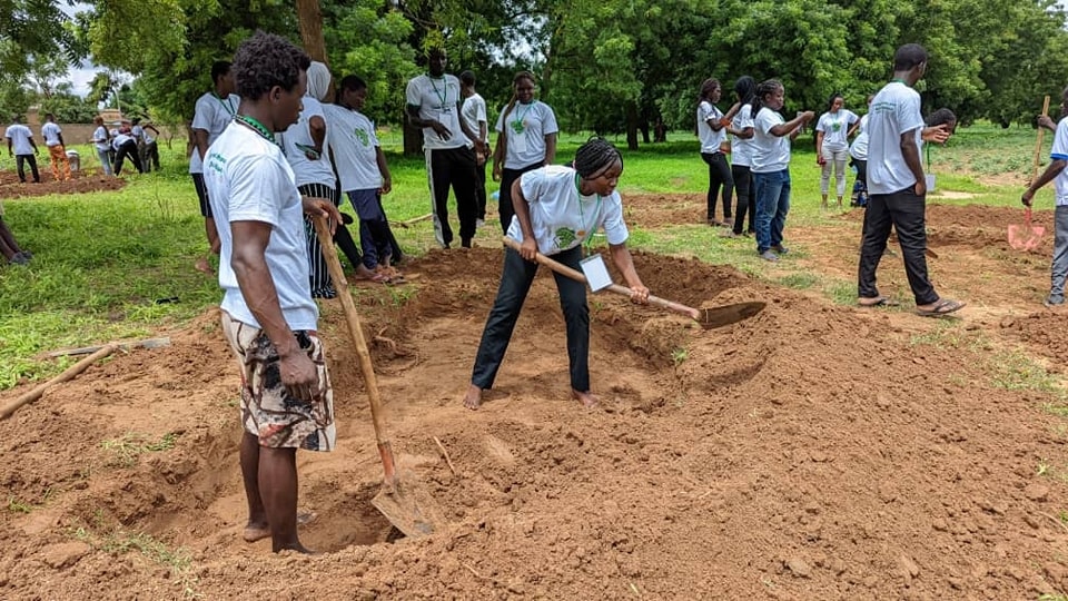 La pratique des demi lunes apprise comme technique de rรฉcupรฉration des terres dรฉgradรฉes par les campeurs.
